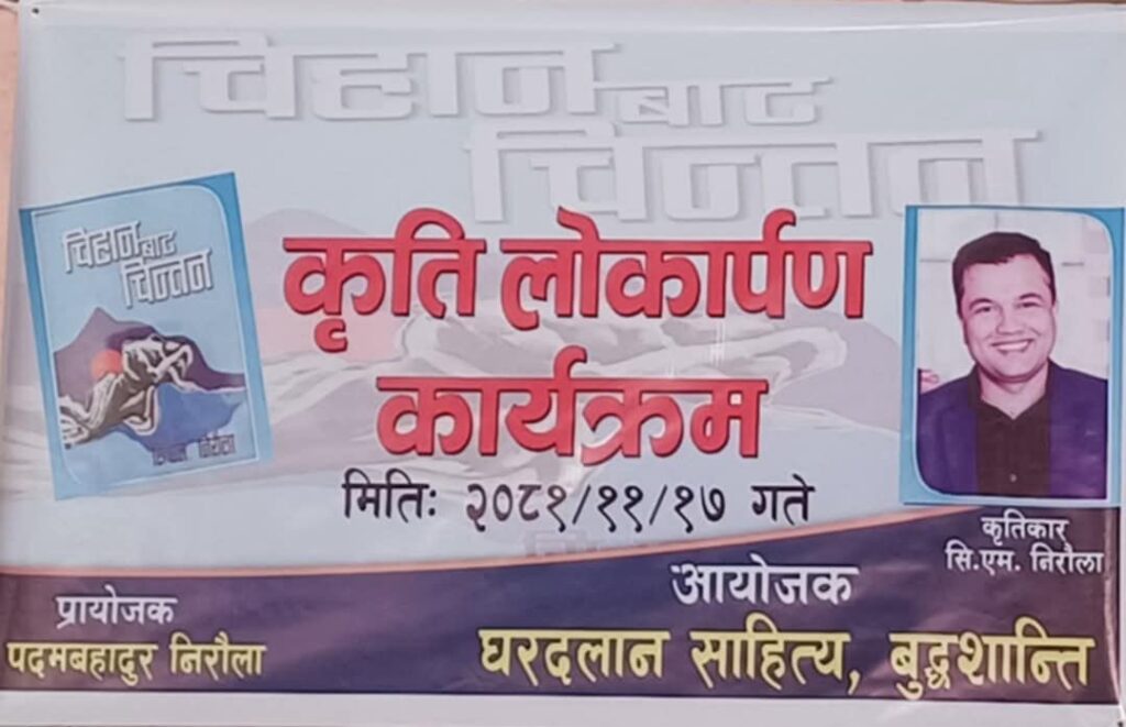 घरदलान साहित्य, बुद्धशान्तिले शनिबार झापाको बुधबारेमा एक कार्यक्रम गरि निरौलाको तेस्रो कृति चिहानबाट चिन्तन विमोचन गरेको हो ।