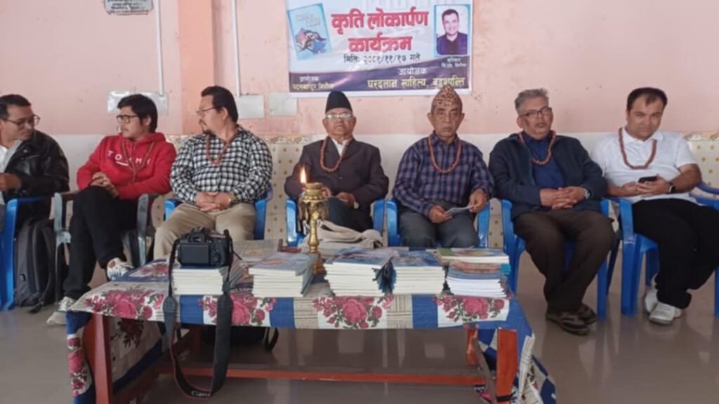 रामजानकी मन्दिर, बुधबारेको सभाकक्षमा आयोजित कार्यक्रमको अध्यक्षता घरदलान साहित्यका अभियन्ता शिवकुमार पौडेलले गर्नु भएको थियो । कार्यक्रममा प्रमुख आतिथि आख्यानकार पुण्यप्रसाद खरेल रहनुभएको थियो ।